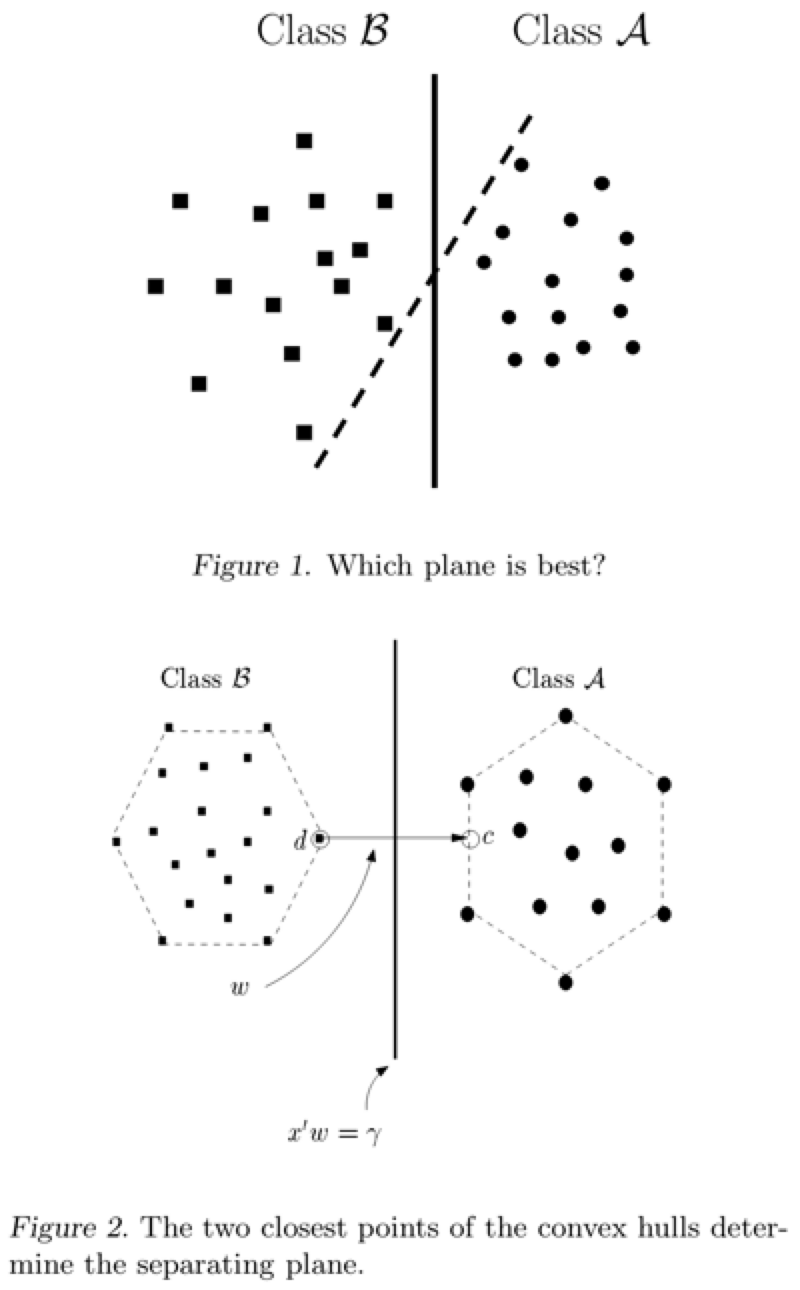 The intuition is that if a classifier is good at separating the most challenging points (that are close to each other), then it will be even better at separating other points. SVM searches for the closest points, so-called “support vectors” (the points are like vectors and the best line “depends on” or is “supported by” them).